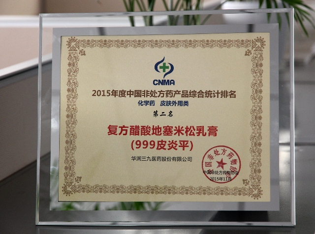 根據(jù)此次發(fā)布的獲獎名單,在生產(chǎn)企業(yè)綜合統(tǒng)計排名方面,華潤三九榮獲企業(yè)綜合榜第一名;在非處方藥產(chǎn)品統(tǒng)計排名方面,999感冒靈獲中成藥感冒咳嗽類第一名,999皮炎平獲化藥皮膚外用類第二名,正天丸獲中成藥頭痛失眠類第二名,三九胃泰獲中成藥消化類第四名,骨通貼膏獲中成藥外用類第四名,999小兒感冒顆粒獲中成藥兒科類第三名,999小兒氨酚黃那敏顆粒獲化藥兒科類第四名?! 。ㄔ#?br>