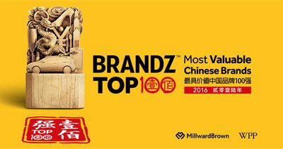 BrandZ最具價(jià)值中國(guó)品牌100強(qiáng)是目前權(quán)威的中國(guó)品牌排行榜,由世界高端品牌傳播服務(wù)集團(tuán)WPP旗下權(quán)威市場(chǎng)調(diào)研公司Millward Brown發(fā)布。作為商業(yè)領(lǐng)域最具代表性的品牌影響力評(píng)估調(diào)研之一,上榜品牌均須達(dá)到極為嚴(yán)格的估值標(biāo)準(zhǔn),該榜不僅采用了彭博社和KantarWorldpanel的財(cái)務(wù)數(shù)據(jù),同時(shí)還結(jié)合了通過訪談收集而來的40多萬名中國(guó)消費(fèi)者的觀點(diǎn)看法,是唯一一份根據(jù)品牌潛在消費(fèi)者和當(dāng)前消費(fèi)者的觀點(diǎn)并結(jié)合財(cái)務(wù)數(shù)據(jù)來計(jì)算品牌價(jià)值的排行榜,具有絕對(duì)的權(quán)威性及公正性。