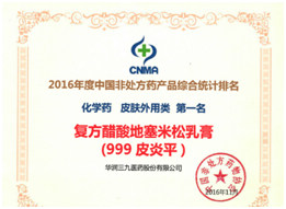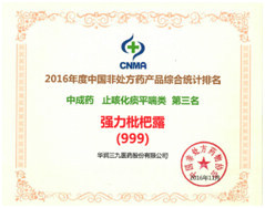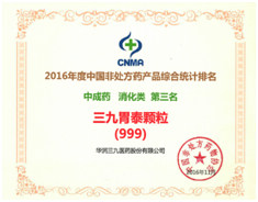 在產(chǎn)品品牌統(tǒng)計(jì)排名中,華潤(rùn)三九感冒‘’靈顆粒/膠囊自2009年以來(lái)連續(xù)七年獲得中成藥類(lèi)感冒咳嗽類(lèi)產(chǎn)品排名第一名,復(fù)方醋酸地塞米松乳膏(999皮炎平)榮獲化學(xué)藥類(lèi)皮膚外用藥類(lèi)第一名,三九胃泰榮獲中成藥類(lèi)消化類(lèi)藥物第三名,強(qiáng)力枇杷露榮獲中成藥類(lèi)止咳化痰平喘類(lèi)藥物第三名的好成績(jī)。多年來(lái),華潤(rùn)三九持續(xù)蟬聯(lián)行業(yè)企業(yè)排行榜首位,多個(gè)產(chǎn)品連續(xù)位居排行榜前茅,一方面顯示了企業(yè)在非處方藥物領(lǐng)域的領(lǐng)導(dǎo)地位,另一方面提升了公司產(chǎn)品在消費(fèi)者心中的地位,使消費(fèi)者更加信賴(lài)華潤(rùn)三九的有關(guān)產(chǎn)品。