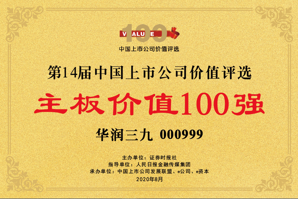 華潤三九再次榮膺中國主板上市公司“價(jià)值百強(qiáng)”