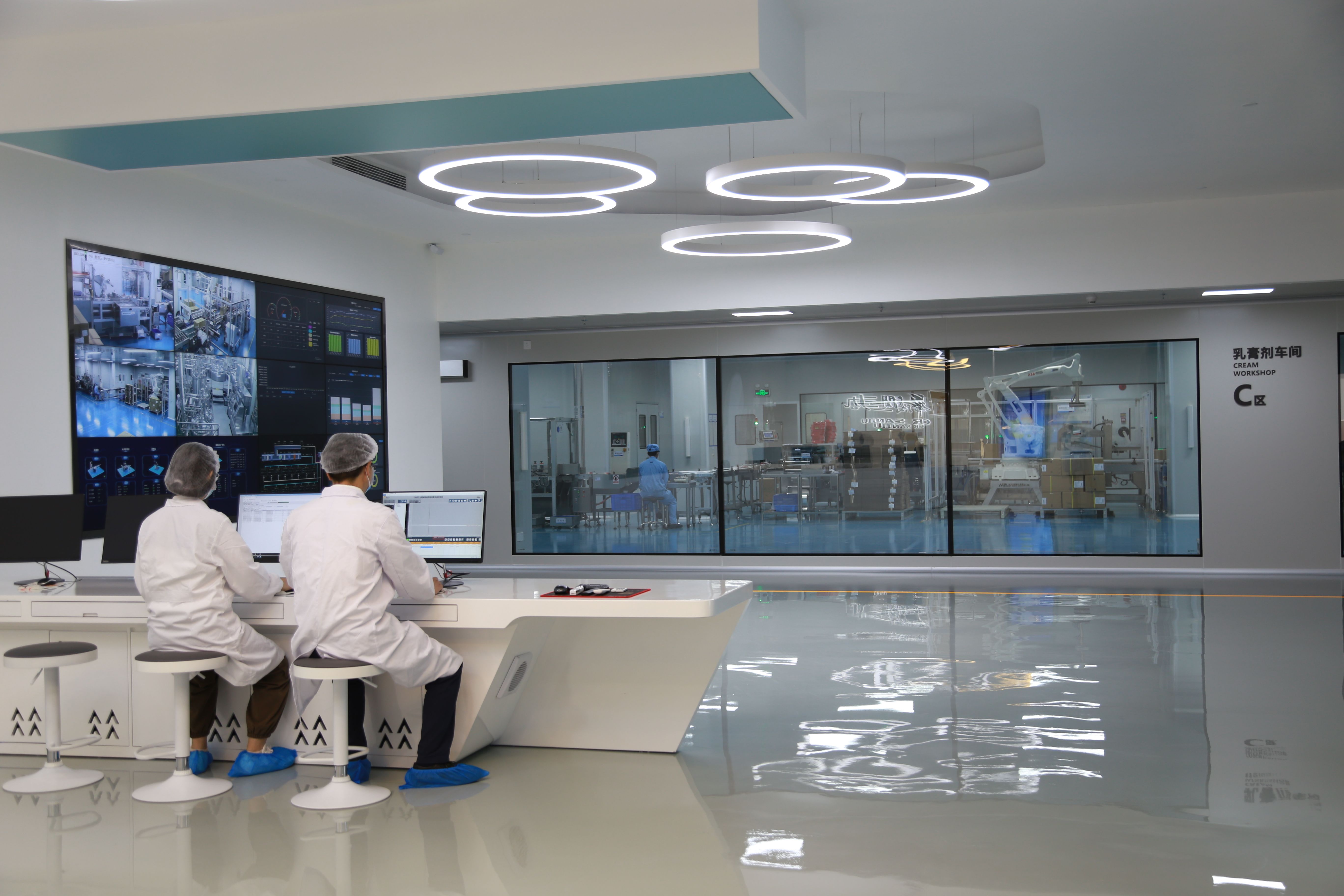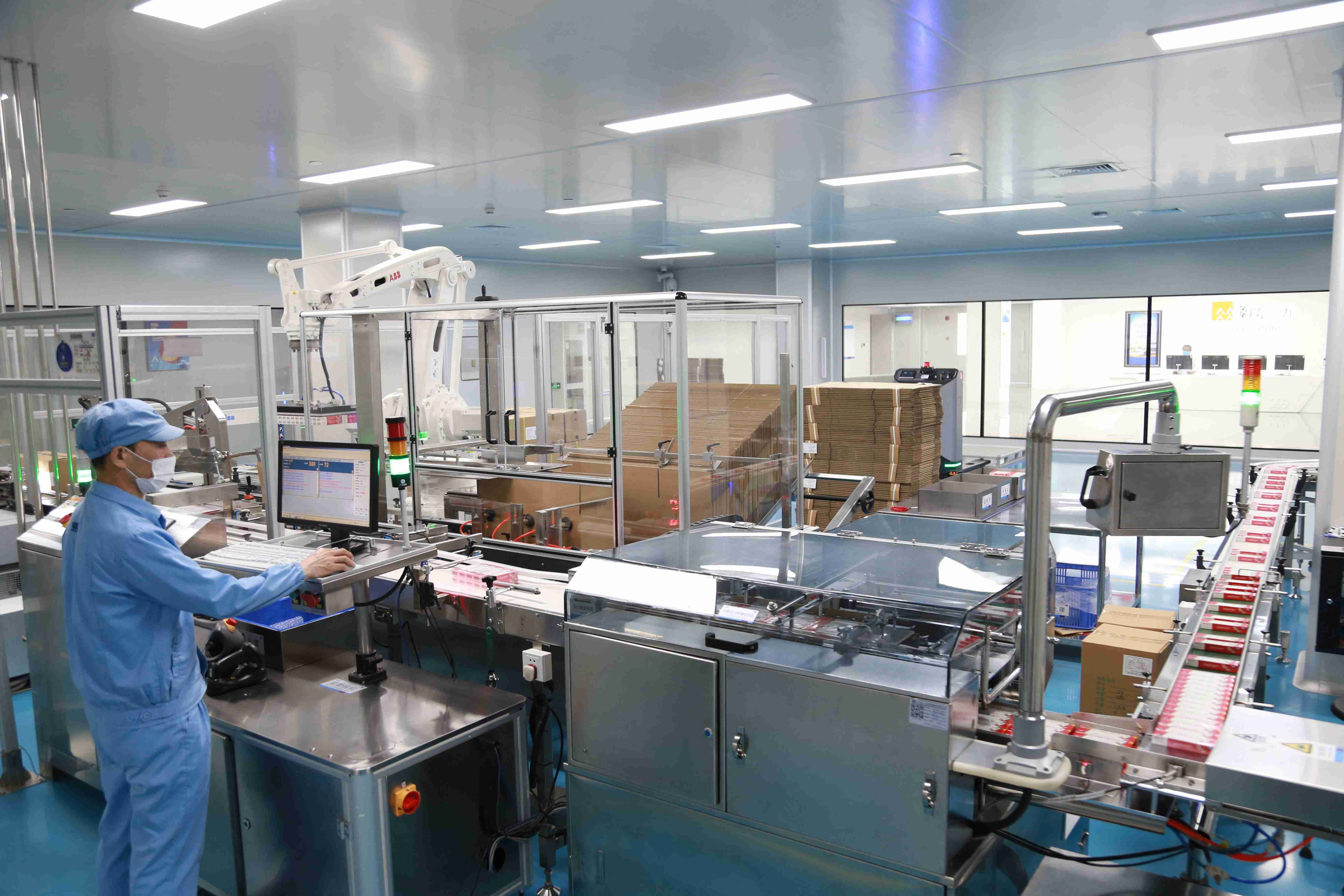 走進(jìn)華潤(rùn)三九觀瀾生產(chǎn)基地的智能制造中控中心,記者從監(jiān)控大屏看到,自動(dòng)化生產(chǎn)設(shè)備排列有序,高效運(yùn)轉(zhuǎn);國(guó)內(nèi)潔凈區(qū)首條AGV運(yùn)輸線來回穿梭,各種原料源源不斷被運(yùn)回;偌大的制藥車間,幾乎看不到工人。