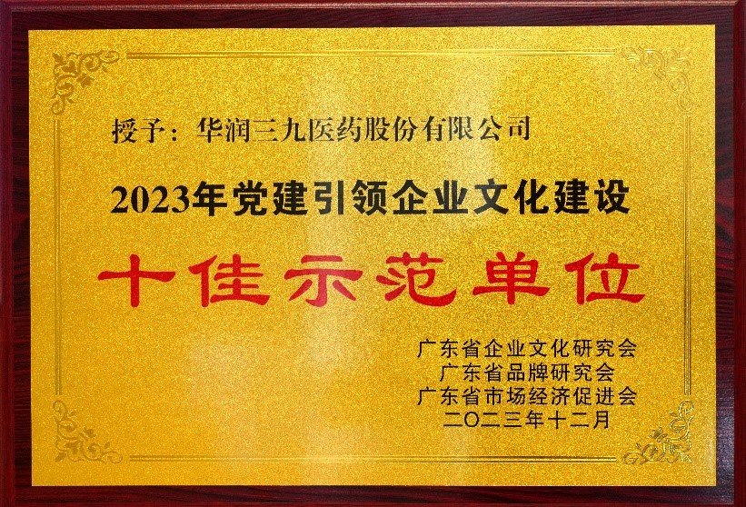 華潤三九獲評“2023年黨建引領(lǐng)企業(yè)文化建設(shè)十佳示范單位”