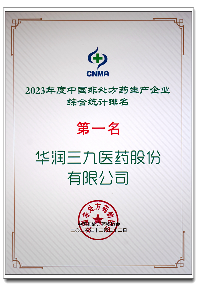 了解更多>>>華潤三九蟬聯(lián)“2023年度中國非處方藥生產(chǎn)企業(yè)排行榜”第一名