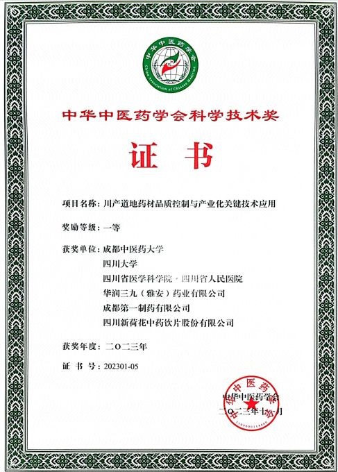 2023年度中華中醫(yī)藥學(xué)會(huì)科學(xué)技術(shù)獎(jiǎng)評審結(jié)果于近日發(fā)布,華潤三九“川產(chǎn)道地藥材品質(zhì)控制與產(chǎn)業(yè)化關(guān)鍵技術(shù)應(yīng)用”科研項(xiàng)目榮獲科學(xué)技術(shù)獎(jiǎng)一等獎(jiǎng)。