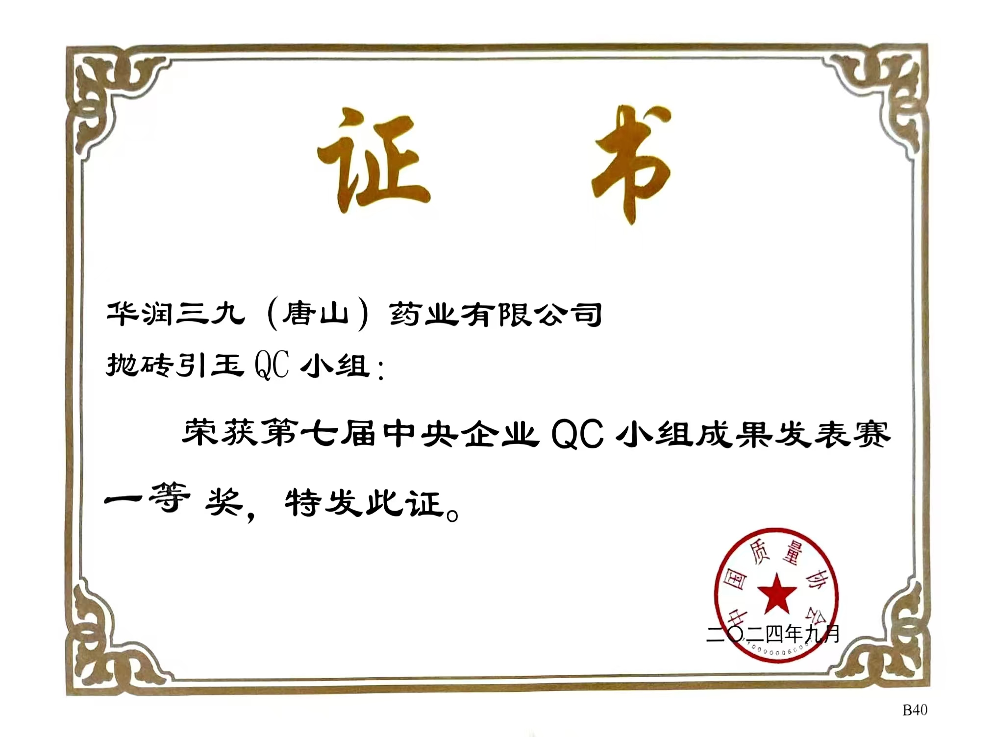 華潤三九(唐山)榮獲第七屆中央企業(yè)QC成果賽一等獎
