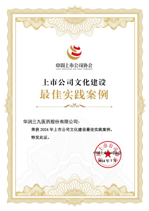 華潤三九獲評(píng)“2024年上市公司文化建設(shè)最佳實(shí)踐案例”