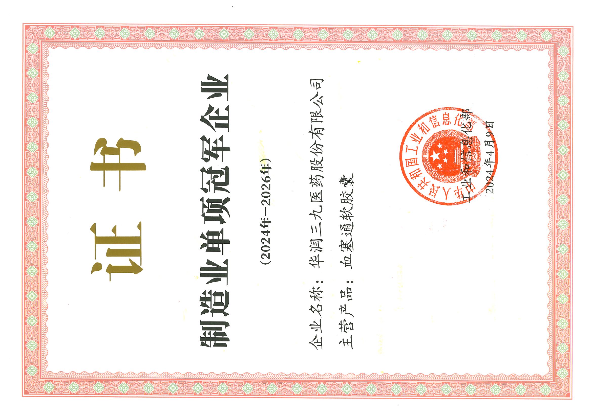 了解更多>>>華潤(rùn)三九獲頒國(guó)家級(jí)榮譽(yù)—“制造業(yè)單項(xiàng)冠軍”證書