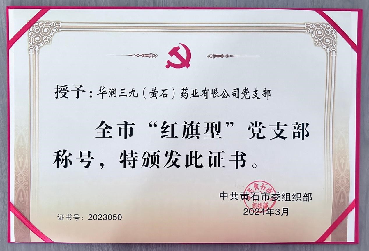 近日,華潤三九(黃石)黨支部獲頒黃石市委組織部授予的2023年度“紅旗型”黨支部榮譽稱號。