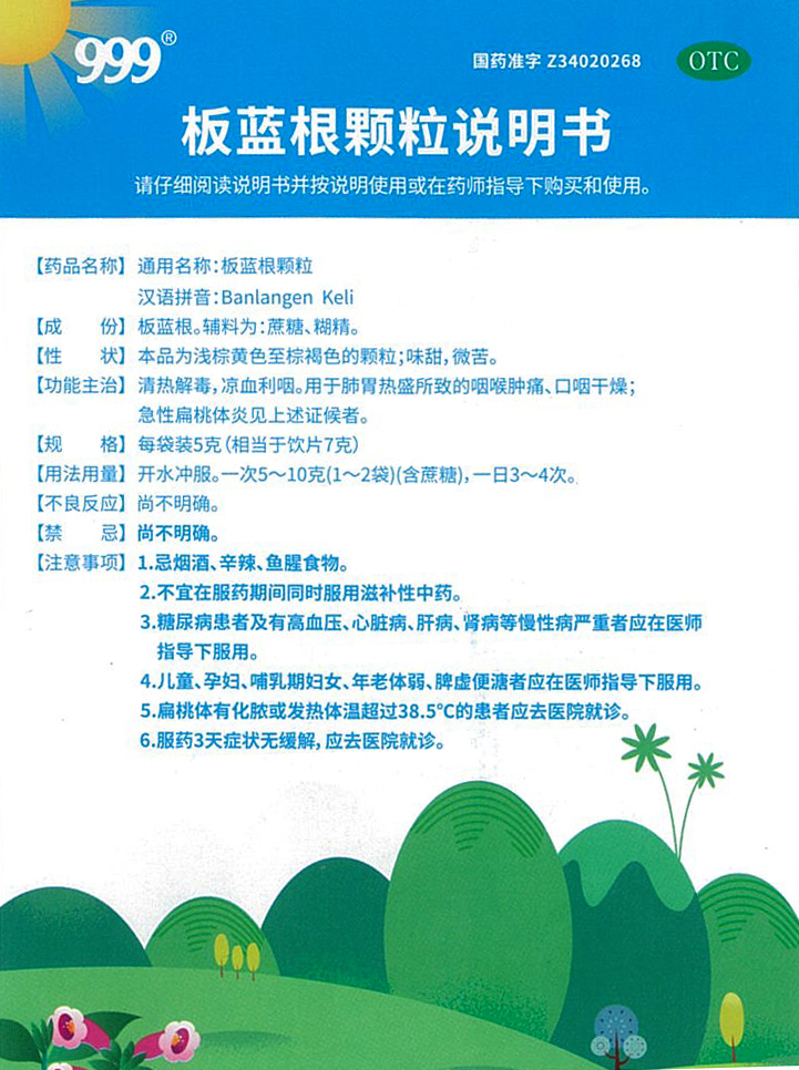 板藍(lán)根顆粒說(shuō)明書(正面)
