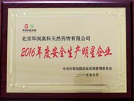 2017年1月18日,北京華潤(rùn)高科天然藥物有限公司獲評(píng)中關(guān)村科技園區(qū)延慶工業(yè)園2016年度“安全生產(chǎn)明星企業(yè)”,這是對(duì)華潤(rùn)高科過去一年安全生產(chǎn)工作的肯定。