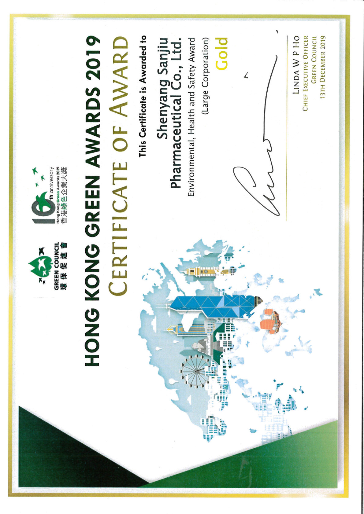 沈陽三九榮獲“香港綠色企業(yè)大獎-超卓環(huán)保安全健康獎”金獎