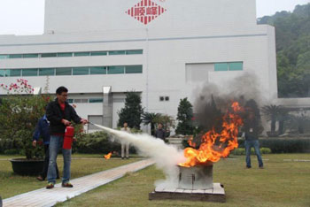 演習(xí)開始前,先邀請(qǐng)了廣東省安全防火咨詢服務(wù)中心馬偉權(quán)主任對(duì)全體員工作了一次消防和演習(xí)注意事項(xiàng)的培訓(xùn)。緊接著開始消防逃生、消火栓接駁、噴水以及使用滅火器滅火系列項(xiàng)目的演練:
