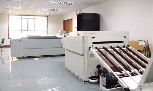 整套的印前制版系統(tǒng)、盒樣機及先進的軟件,引進世界上最先進的CTP,實現(xiàn)了從設(shè)計到出盒型、從設(shè)計到輸出PS版的一體化流程;先進的色彩管理系統(tǒng),可將印刷、數(shù)碼打印和電腦色彩保持一致,使所見即所得。設(shè)備:CTF、CTP、柔版制版機、寬幅打印機、盒樣機、GMG數(shù)碼色彩管理系統(tǒng)。