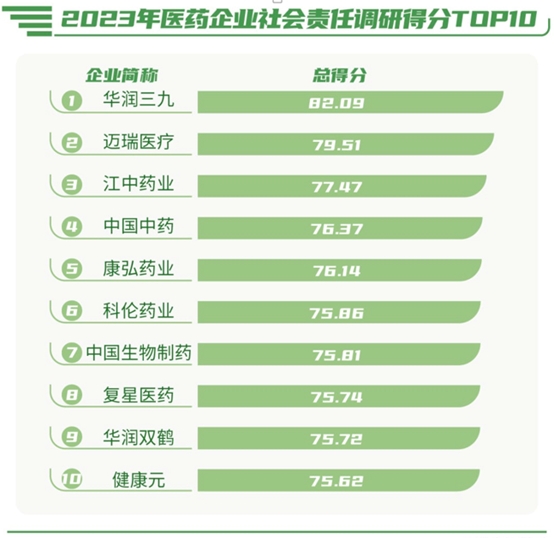 了解更多>>>華潤三九入選南方周末“2023年醫(yī)藥企業(yè)社會(huì)責(zé)任調(diào)研榜”第一