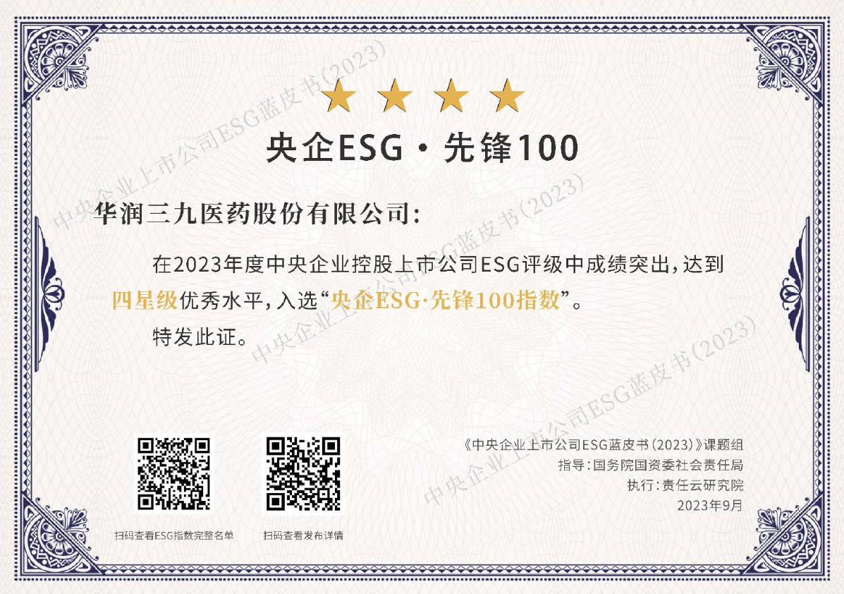 “央企ESG先鋒100”指數(shù)發(fā)布華潤三九位列第80位