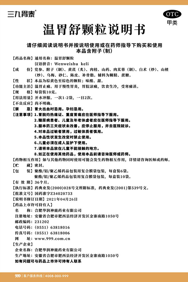 溫胃舒顆粒 10g x 6袋